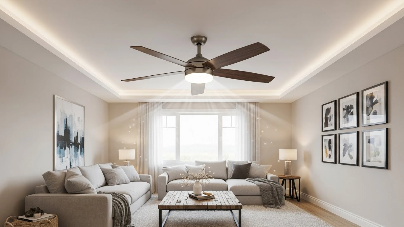 During summer, a ceiling fan creates a cooling effect by moving air across the skin. This can make a room feel several degrees cooler. In winter, reverse mode helps distribute warm air that rises to the ceiling. This improves heating efficiency and can reduce energy bills.